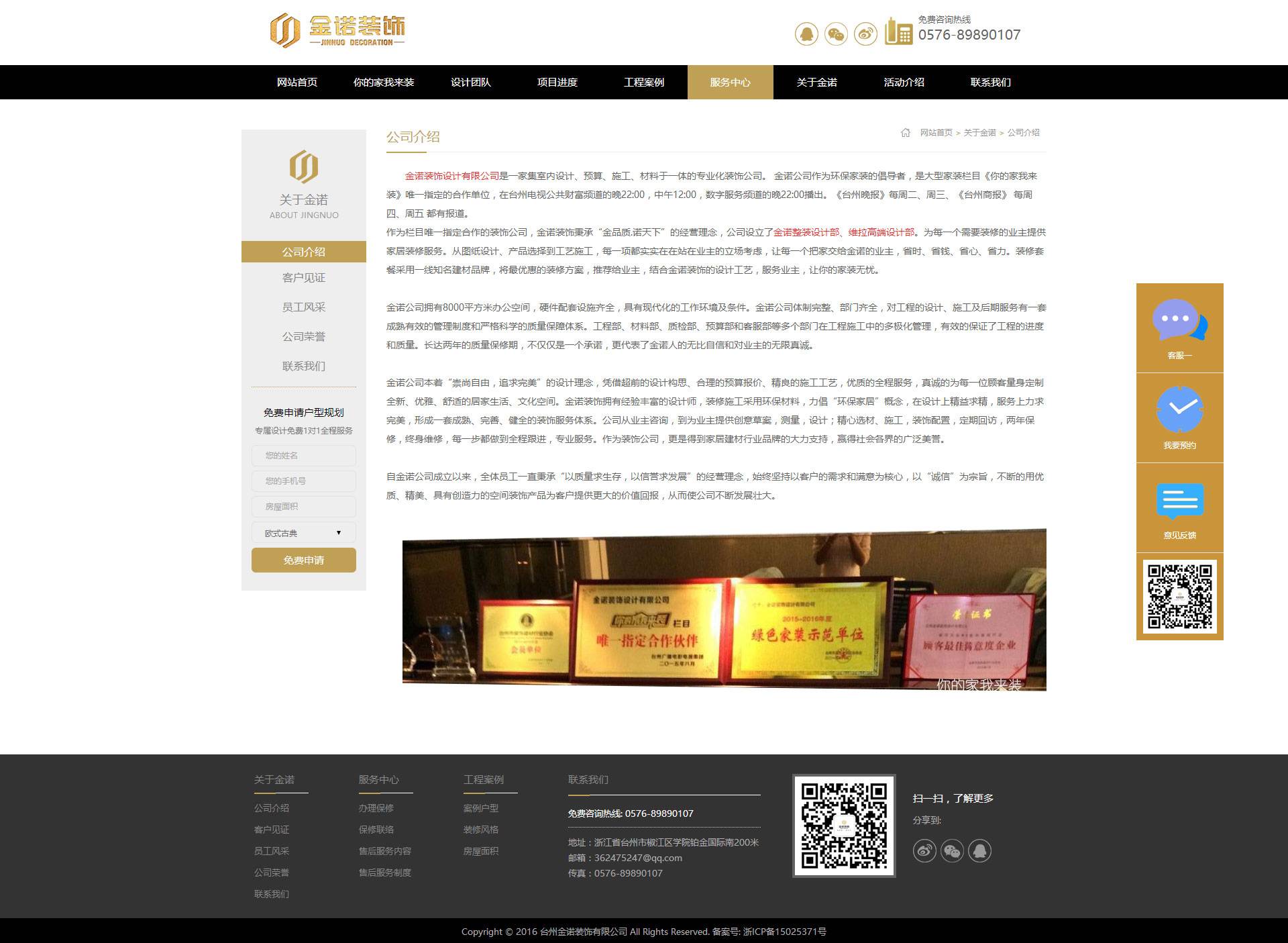 金諾裝飾設(shè)計有限公司是一家集室內(nèi)設(shè)計、預(yù)算、施工、材料于一體的專業(yè)化裝飾公司。 金諾公司作為環(huán)保家裝的倡導(dǎo)者,是大型家裝欄目《你的家我來裝》唯一指定的合作單位,在臺州電視公共財富頻道的晚22:00,中午12:00,數(shù)字服務(wù)頻道的晚22:00播出?!杜_州晚報》每周二、周三、《臺州商報》 每周四、周五 都有報道。