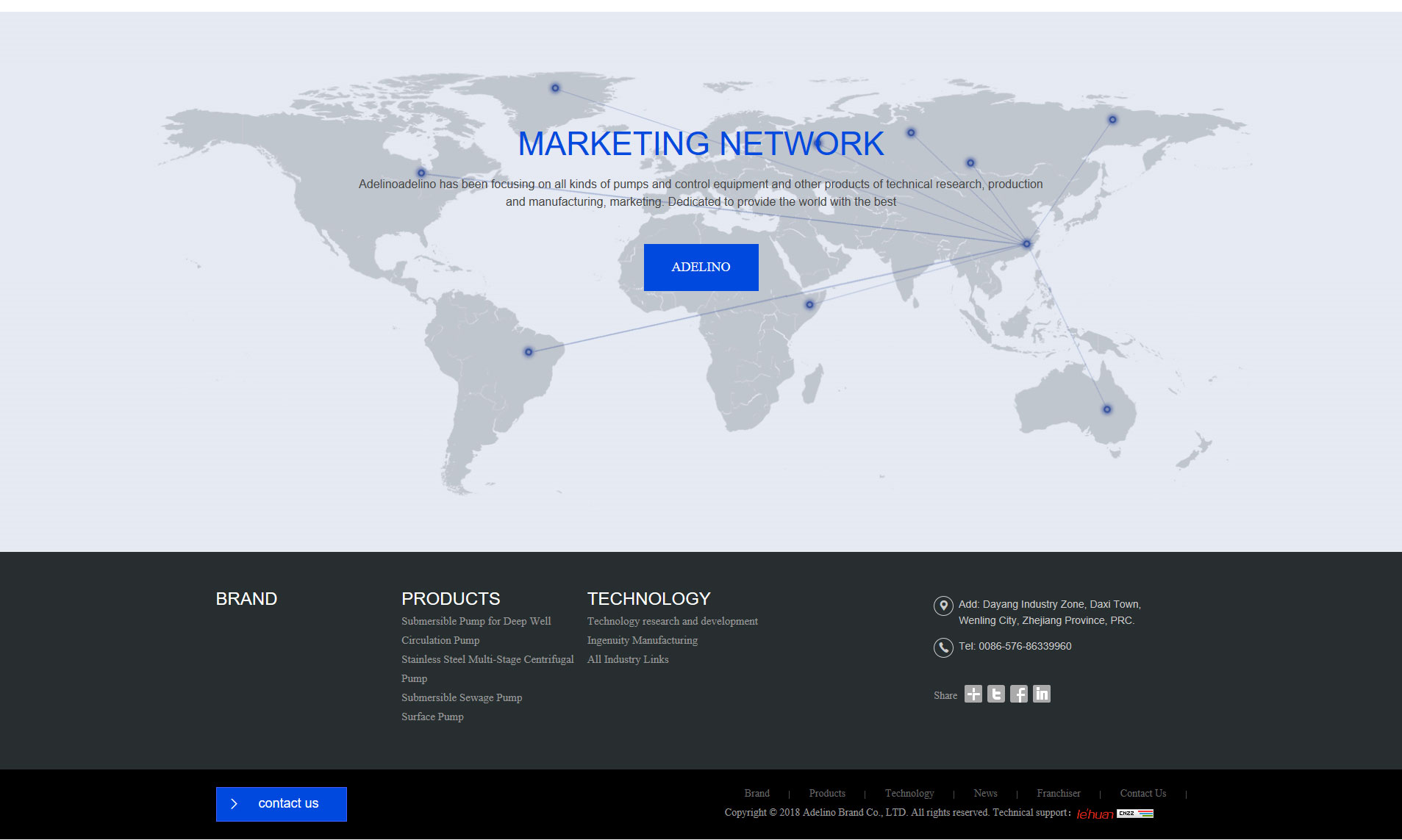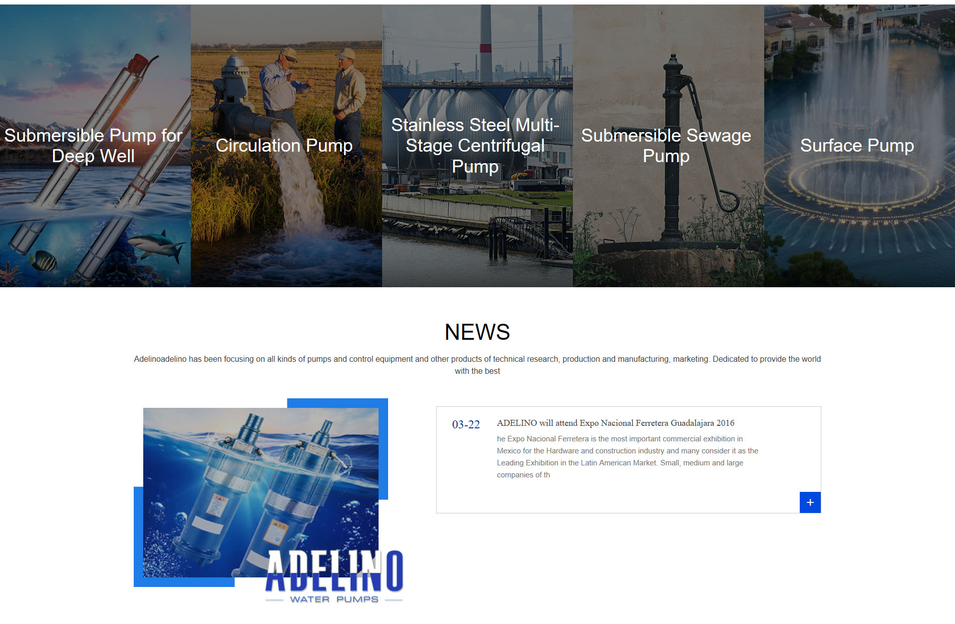 Adelinoadelino has been focusing on all kinds of pumps and control equipment and other products of technical research, production and manufacturing, marketing. Dedicated to provide the world with the best.