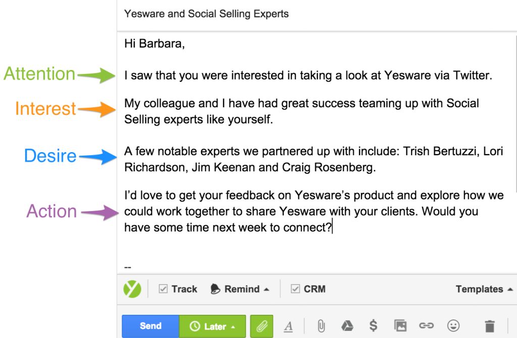 今天我們接著來總結(jié)最佳模版。包括來自Yesware銷售達(dá)人和其他人的真實(shí)示例。