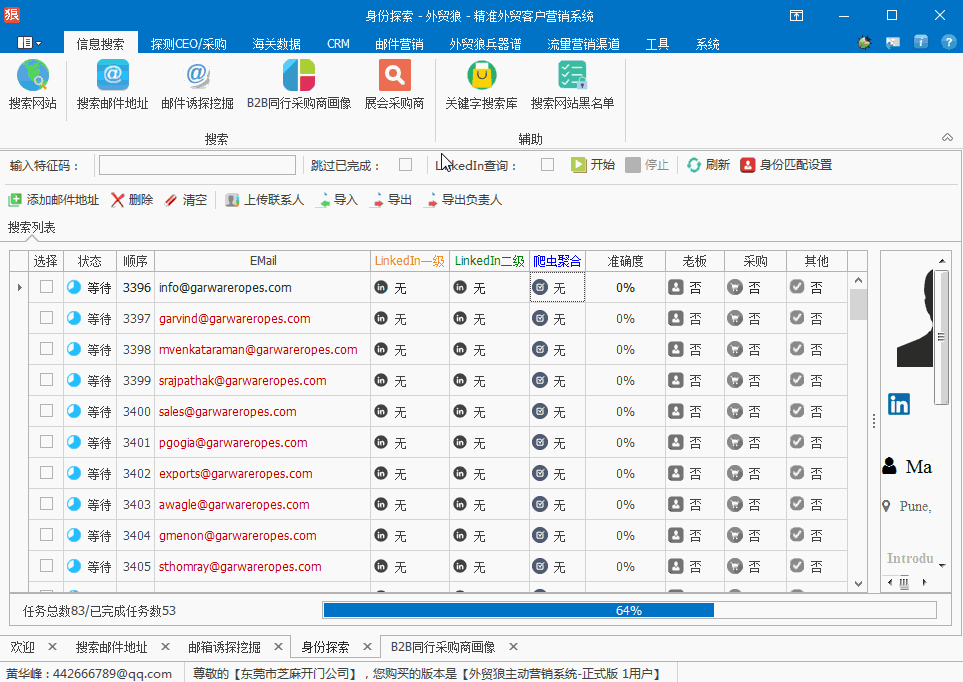 用外貿(mào)狼找到這個(gè)網(wǎng)站的一個(gè)公開的郵箱:info@garwareropes.com作為線索來(lái)拋磚引玉。