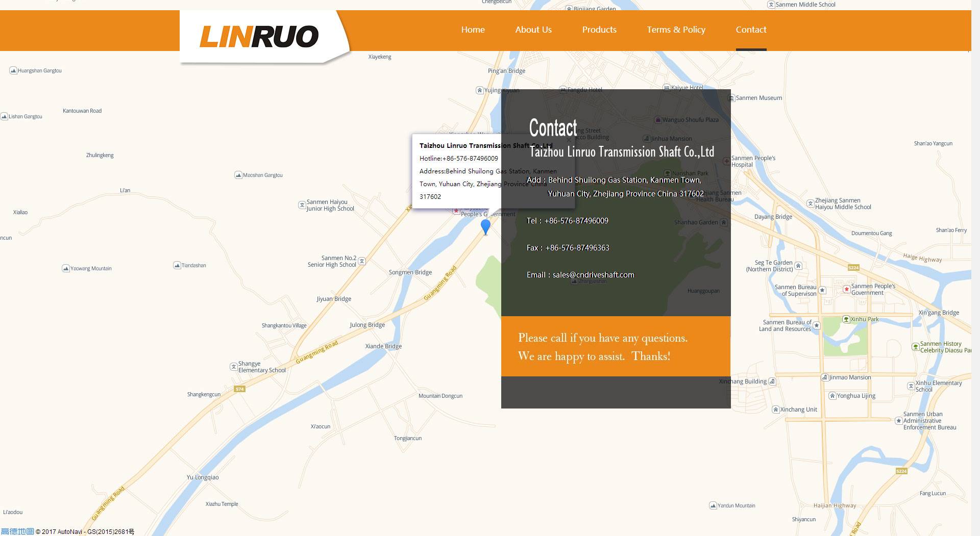 Taizhou Linruo Transmission Shaft specialized in developing, manufacturing and marketing automobile driveshaft (Propeller Shaft, Prop shaft). It was established in 2012 and located in Yuhuan City, Zhejiang Province. Linruo focus on manufacturing complete driveshaft and driveshaft parts (CV Joint, Coupler and Center Support Bearing) for many of the popular rear wheel drive cars and light trucks on the road today. With the great effort of 30 honest, loyal and skilled workers, Linruo Company now have annual production capacity 20000pcs driveshaft.