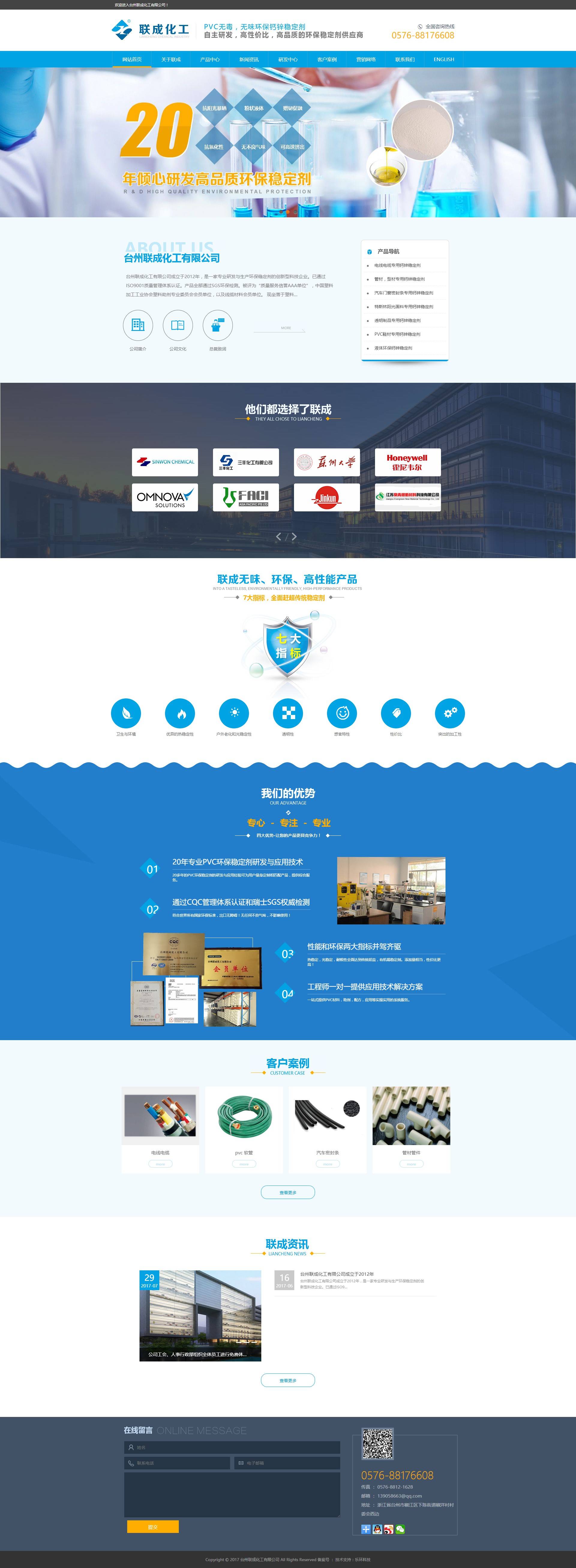 臺州聯(lián)成化工有限公司成立于2012年,是一家專業(yè)研發(fā)與生產(chǎn)環(huán)保穩(wěn)定劑的創(chuàng)新型科技企業(yè)。已通過ISO9001質(zhì)量管理體系認(rèn)證。產(chǎn)品全部通過SGS環(huán)保檢測。被評為“質(zhì)量服務(wù)信譽AAA單位”,中國塑料加工工業(yè)協(xié)會塑料助劑專業(yè)委員會會員單位,以及線纜材料會員單位。 現(xiàn)坐落于塑料之鄉(xiāng)---臺州市椒江區(qū)下陳街道椒洋工業(yè)園。